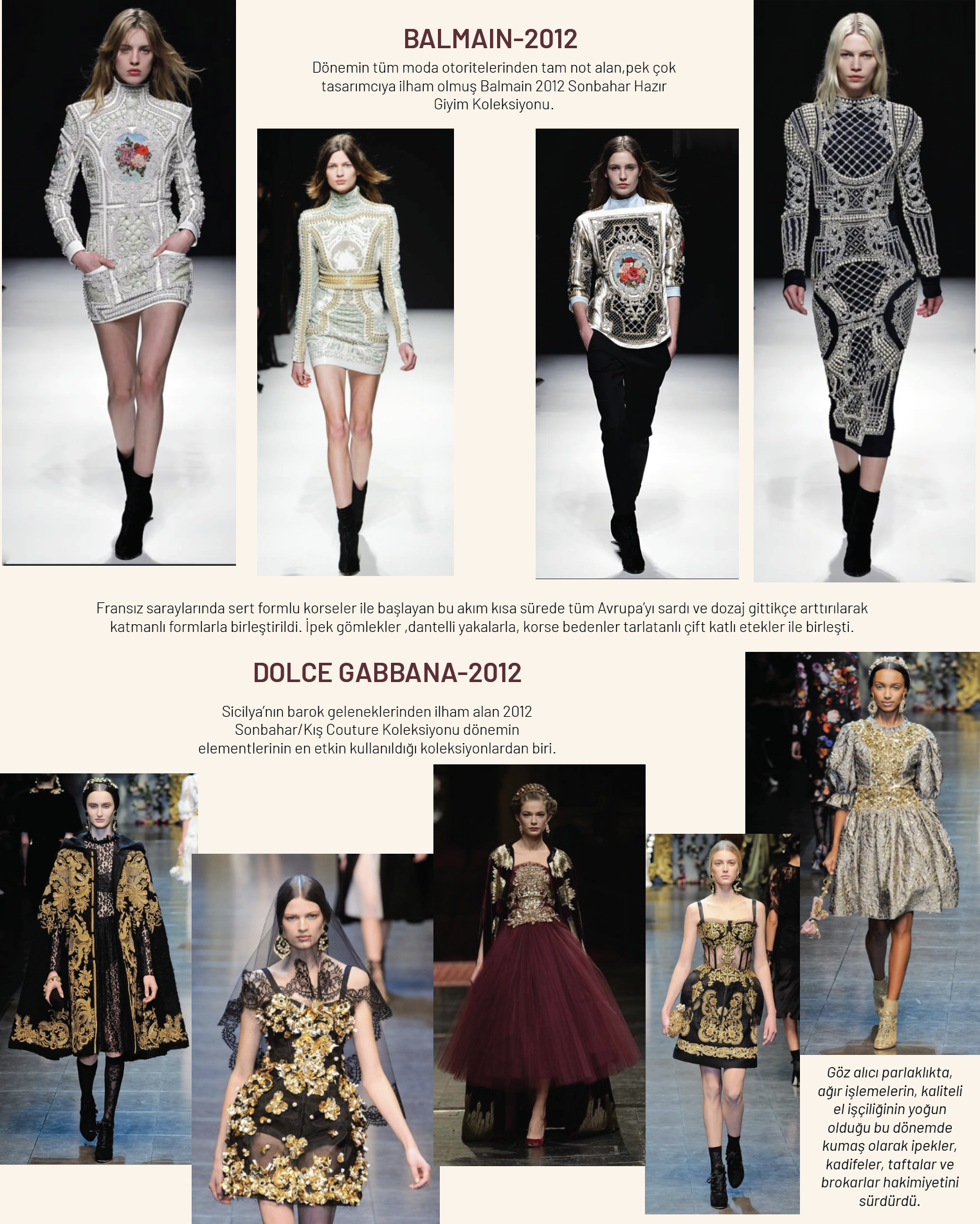 1600-1700 yılları arasını kapsayan modanın en şatafatlı dönemlerinden Barok dönemi deyince akla direkt parlak renkler, altın işlemeli kumaşlar, korse formlu bedenler ve kabarık etekler gelir.
