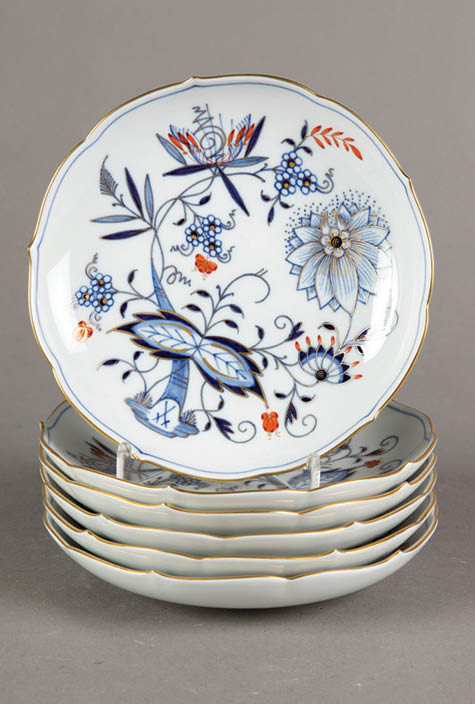1737-41 arasında Kändler ve Johann Friedrich Eberlein, fabrika yöneticisi Brühl Kontu Heinrich için, birlikte üstü kuğu ve su perisi figürleri ile bezeli, 2 bin 200 parçalık ‘Swan’ adını verdikleri bir yemek takımı tasarladılar. 1739 dolaylarında, dünyaca bilinen en önemli deseni olan ‘soğan başı’ deseni ‘’Zwiebelmuster’’ ile mavi renkli bir sıraltı bezeme kullanılmaya başladılar ve bu desen çok popüler oldu. Bu yüzden de oldukça çok taklit edildi. 1740’tan sonra tek ya da buket halinde doğal bir tarzda tasvirlenmiş çiçekler içeren ve Alman çiçekleri (Deutsche Blumen) adıyla bilinen bir tasarım kullanılmaya başlandı.