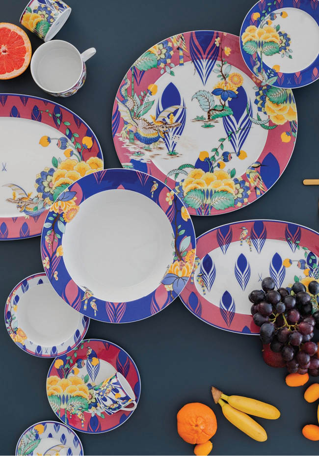 Ressam Höroldt, desenlerinde en iyi görsel efekti sağladığı için düz ve kabartma porselen yüzeylerini tercih etti. “Höroldt chinoserie” olarak anılan Çin ve Japon yaşamını tasvirleyen manzara resimleri, Hint tarzı süslemeler Rokoko akımının etkisinde, Avrupai bir anlayışla yeniden yorumlandı.